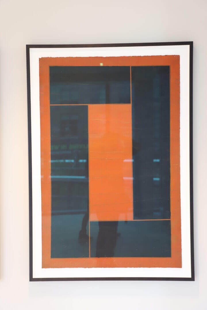 Untitled (Black Square on Red), acrylic on paper 47.5 x x 31.5 in